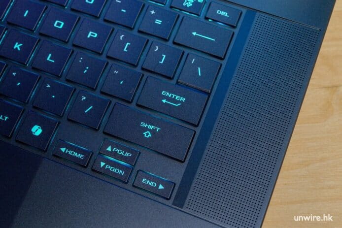 為方便用家隨時隨地睇片、打機,在音效方面也用上靚料。Zephyrus G16 採用改良版低音揚聲器,官方就表示音量增幅達 47%,低音頻率下探至 100Hz。在實際收看具爆炸場面的電影、遊戲,音質表現震撼。