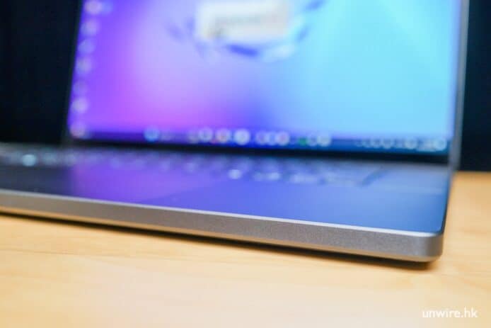 打開機蓋後你即刻會看到面積大得驚人的觸控板。它長闊分別為 15cm x 10cm,比上代觸控板面積提升 37%,可說是專門為創意工作者度身訂造。在戶外工作例如需要放大相片,檢視影片,這個大型觸控板都可令操作更得心應手。不過留意它實體有click感的點擊按鈕的部份為下半部,而上半部都可以輕觸式點擊操作電腦。