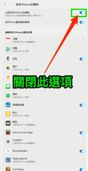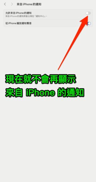 ▲看見上圖畫面就代表之後不會在 Mac 看到來自 iPhone 的通知