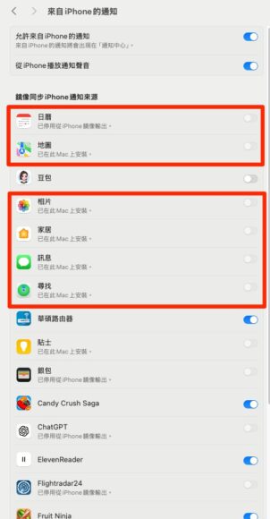 不過要留意的是,部分功能如顯示「已在此 Mac 上安裝」的話,就無法停用通知,因為本身該通知預設會在 Mac 上顯示,與 iPhone 無關。