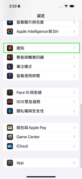 ▲開啟設定後選擇「通知」