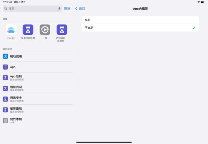 如果家長仍然不放心,大可以再再選取「不允許 App 內購買」,雙重保險。