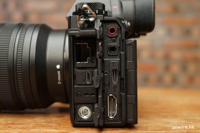 新款相機延續了 Sony 現代化選單系統,上述的 5 個轉盤中有 3 個有鎖定按鍵,在專業攝影師忙碌的拍攝工作中,避免誤操作的出現。機身除轉盤外,亦擁有 Joysick、C1 至到 C4 共 4 個自訂功能按鍵,獨立錄影按鍵等。機身連接性一如旗艦級別,包括咪高風插口、耳機插口、有線網絡插口、PC 同步插口、全尺寸的 HDMI 插口與快速充電功能,應對專業拍攝需求。記憶卡插槽支援雙 CFexpress Type A 與 SD 卡,確保用家自由選擇儲存媒體,適合穩定高速連拍、8K 影片攝錄的需求。