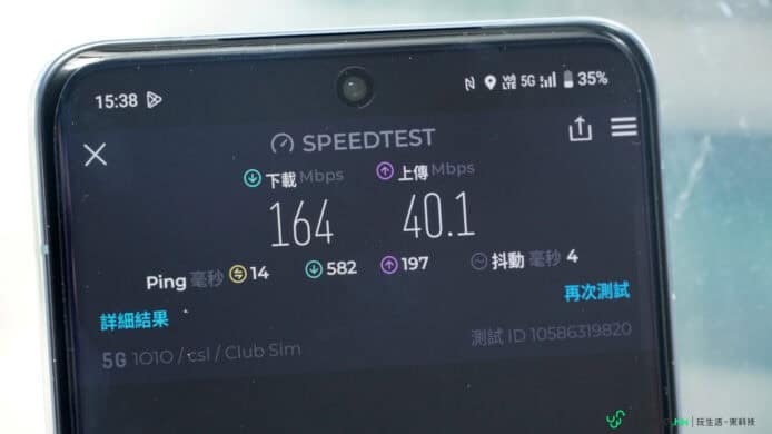 ▲網速方面,筆者在沙田將 1010 的 5G SIM 放入機內,並以 Speedtest 測試網速,結果下載速度亦有 164Mbps,表現算是不俗。