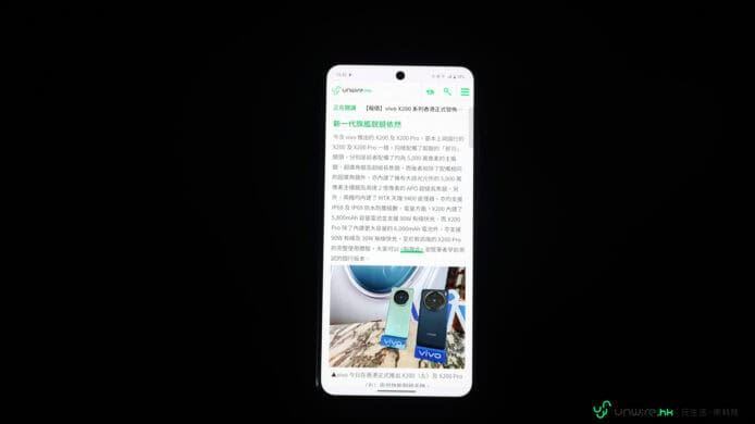 ▲至於顯示質素方面,X200 Pro 的熒幕表現不錯,文字顯示清晰銳利,影片色彩亦算自然,而且亮度亦十分高,局部峰值亮度可達到 4500 尼特,相比上代更光亮,即使在日光直射熒幕情況下,仍能清晰看到顯示內容。