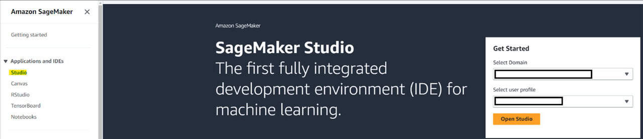 首先,開啟 AWS 管理控制台並轉到 SageMaker Studio。
