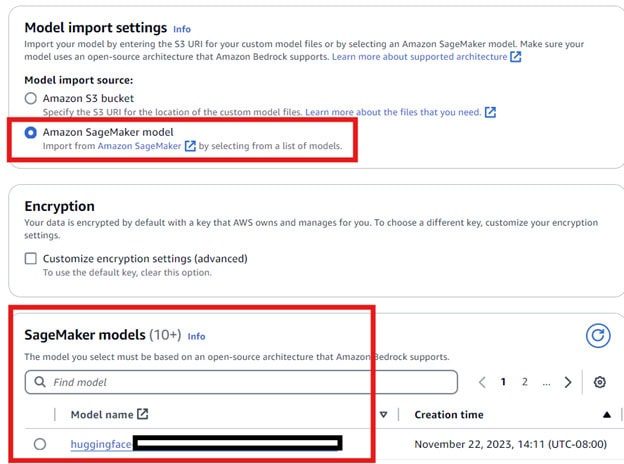 輸入模型名稱,並在 Model import settings 下,選擇 Amazon SageMaker model,然後選擇模型旁邊的單選按鈕。