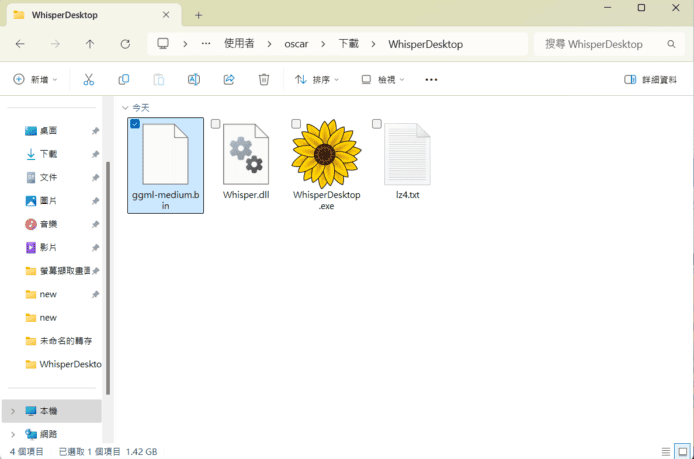 下載完成後,將「ggml-medium.bin」檔案移動至剛才有向日葵圖案「WhisperDesktop.exe」的文件夾。
