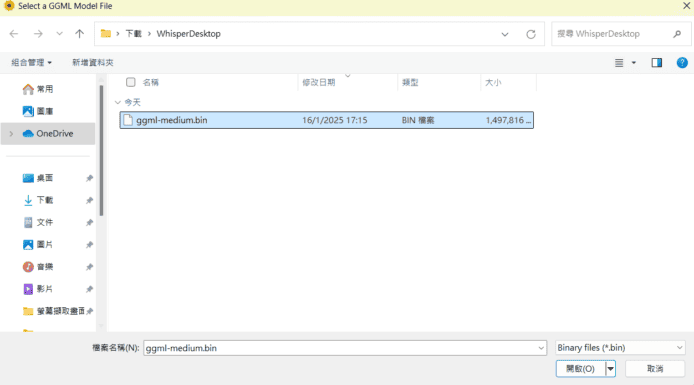 將「ggml-medium.bin」移動至 WhisperDesktop 文件夾後,你就可以開始設定 WhisperDesktop。