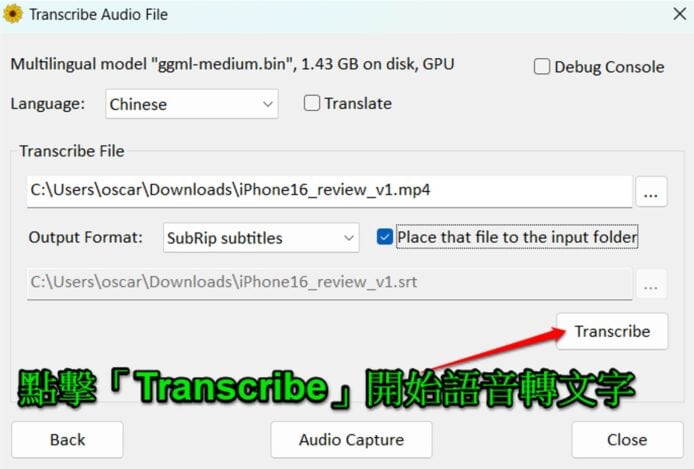 ▲點擊「Transcribe」開始語音轉文字