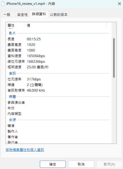 ▲小編測試影片長度為 15:25