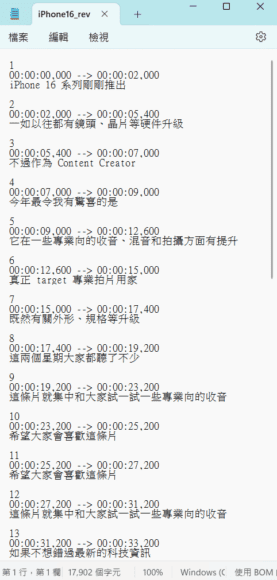 ▲生成的 .srt 字幕檔