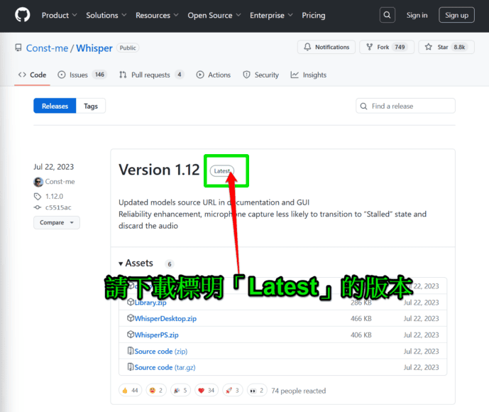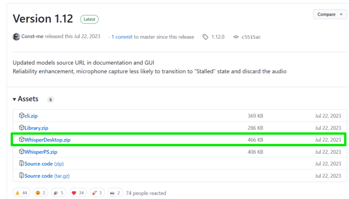 要使用 WhisperDesktop GUI,首先需要在 GitHub 下載桌面程式,截稿前最新版本為 1.12。