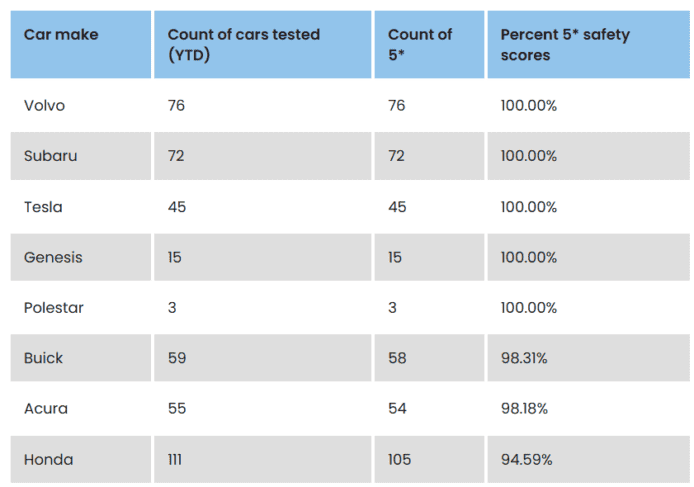 除了 Tesla 和 Polestar 外,其他獲得100% 5星安全評級的品牌還包括 Volvo、Subaru 和 Genesis。這些品牌的車型不僅為駕駛者提供更高的安全保障,還有可能帶來較低的保險成本。然而,專家提醒,由於這些車輛採用了高端安全技術,其修復成本較高,可能會在某些情況下增加維修費用。