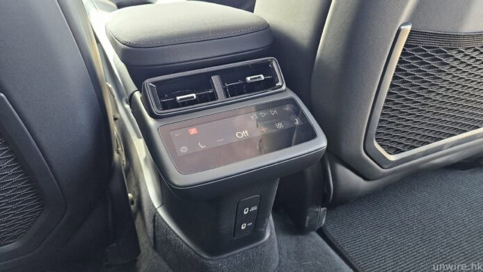 ▲後座也有獨立的冷氣調較及座椅設定,並設有 2個 type c 充電接口。