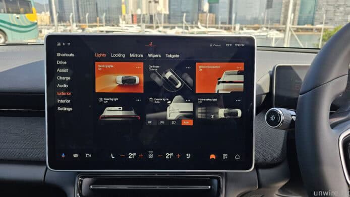今次測試的是馬力較強的雙馬達版本,在 Sport 模式下四驅 544 匹馬力絕對能夠給予駕駛者超跑級別的加速感,雖然引擎聲欠奉但是車箱的隔音卻值得一讚,路噪及環境雜聲都過濾得非常好,4 Pots Brembo 卡鉗的剎車反應及力量亦非常充裕。加上它的懸掛軟硬適中,小編在東九龍一帶使用 Normal 模式也不會覺得過軟,算是偏向舒適的設定但又不失駕駛樂趣和操控性,而且在較高速的彎位 Polestar 4 的低重心設計亦成功把穩定性控制得相當好,高速駕駛亦不失舒適的乘坐感。如果喜歡更接受跑車的操控感,大可以把懸掛及軚盤轉向設定為 Firm,相信絕對會有另一番體驗!