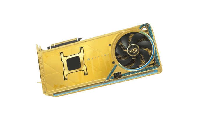 華碩(ASUS)近日發布 ROG Astral GeForce RTX 5090 Dhahab Gold Edition,這款顯示卡採用金色外觀與中東風格設計,展現該地區的繁榮與奢華。整體造型金碧輝煌,輔以祖母綠點綴細節,風扇軸心鑲嵌金色 ROG 標誌,背面更融入摩天大樓天際線,象徵中東城市從沙漠崛起,邁向現代化發展的歷程。