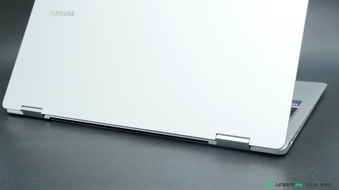 ▲Galaxy Book5 Pro 360 的機身設計亦有些特色,大家可以見到揭起熒幕位置會有少許凹進去,令大家以一隻拇指已可揭起熒幕,使用上更輕鬆。