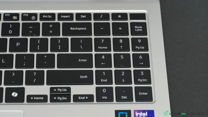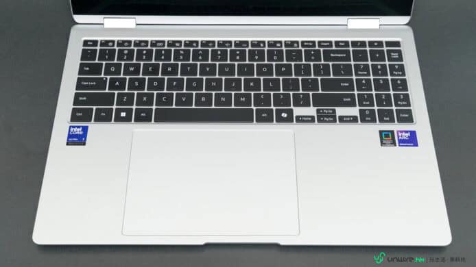 ▲Samsung Galaxy Book5 Pro 360 內建了 16 吋筆電的全尺寸鍵盤,還內建了重新佈局並縮細佔據面積的數字鍵盤,使用上需要點時間適應。