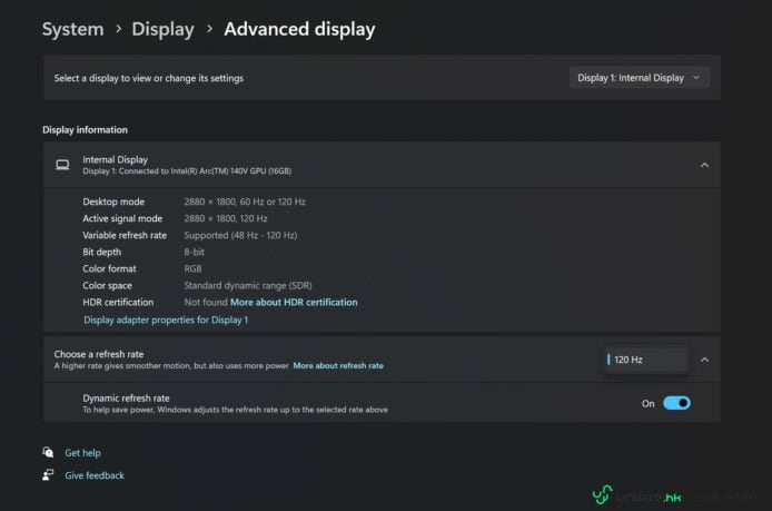 ▲熒幕解析度為 2880 x 1800,並支援最高 120Hz 更新率。
