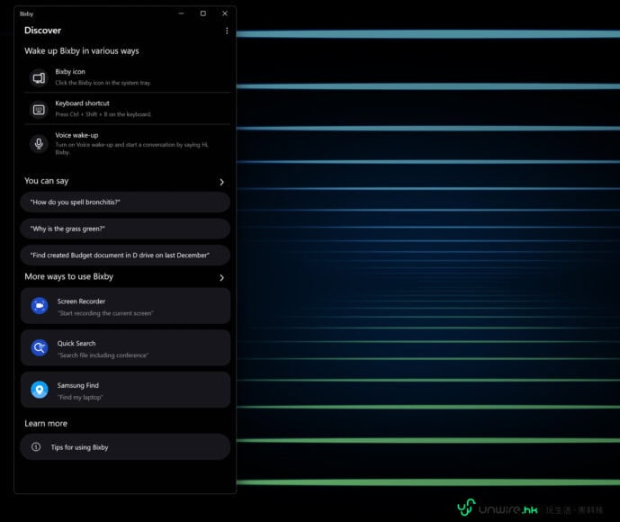 ▲當然,作為 Samsung 的筆電,自然仍可使用 Bixby 操控系統。