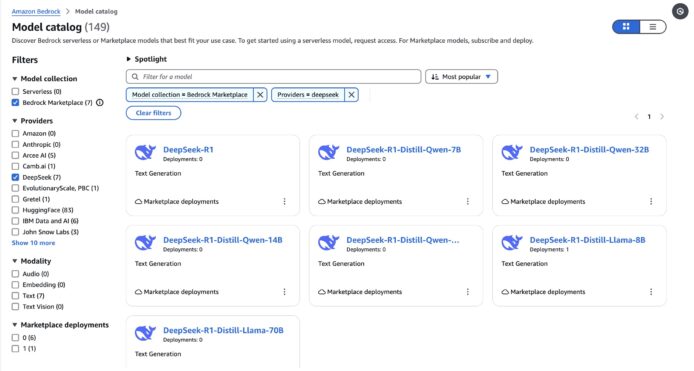 DeepSeek-R1 現已上架Amazon SageMaker JumpStart,用戶可以透過這些平台輕鬆部署並運行該模型,用於生成式 AI 應用的推理 (Inference)。無論是探索創新 AI 應用還是大規模部署解決方案,DeepSeek-R1 的強大功能將助力企業快速實現目標。