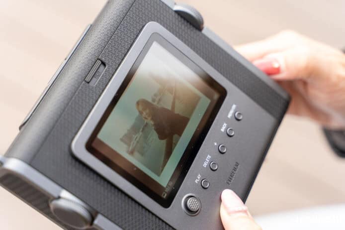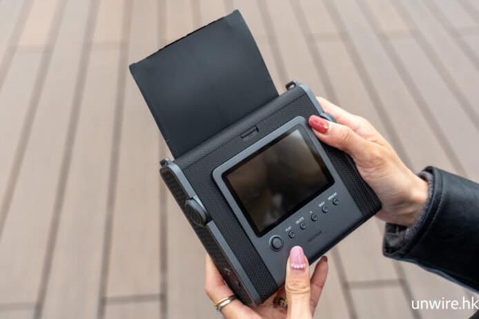 Fujifilm instax WIDE Evo 延續傳統菲林相機的理念,機身採用深邃的黑色基調搭配精緻金屬質感,散發出復古與現代交織的奢華氣息。配備即時取景熒幕,用戶可以隨時預覽拍攝效果,精選理想瞬間再列印相片,不用擔心「炒相」浪費菲林。不過小編略想批評一下熒幕顯示,在大陽光底下有點難看,而且熒幕解像度看來完全跟不上 2025 年標準。