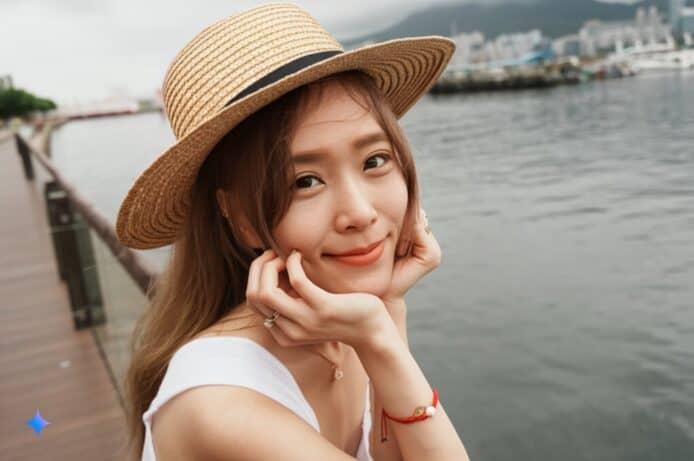 Gemini 生成的草帽看來更加真實,但就不知道為甚麼要弄亂小嫻的髮型。