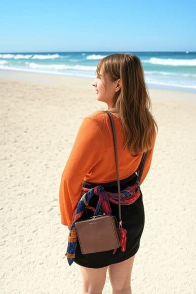 要求 Grok 更改背景後,Grok 生成的圖片的確是沙灘,但就更改了沙律的姿勢,而且額外為沙律增加了一條絲巾。除此之外亦更改了沙律的樣子,完全認不出她。另外放大看的話,可見腳趾非常不自然。