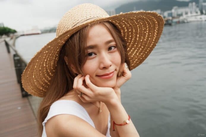 小編上傳了一張小嫻的照片,分別要求 Grok 和 Google Gemini 2.0 替小嫻加一頂草帽。小編使用的指令為:為圖中人物加上一頂草帽
