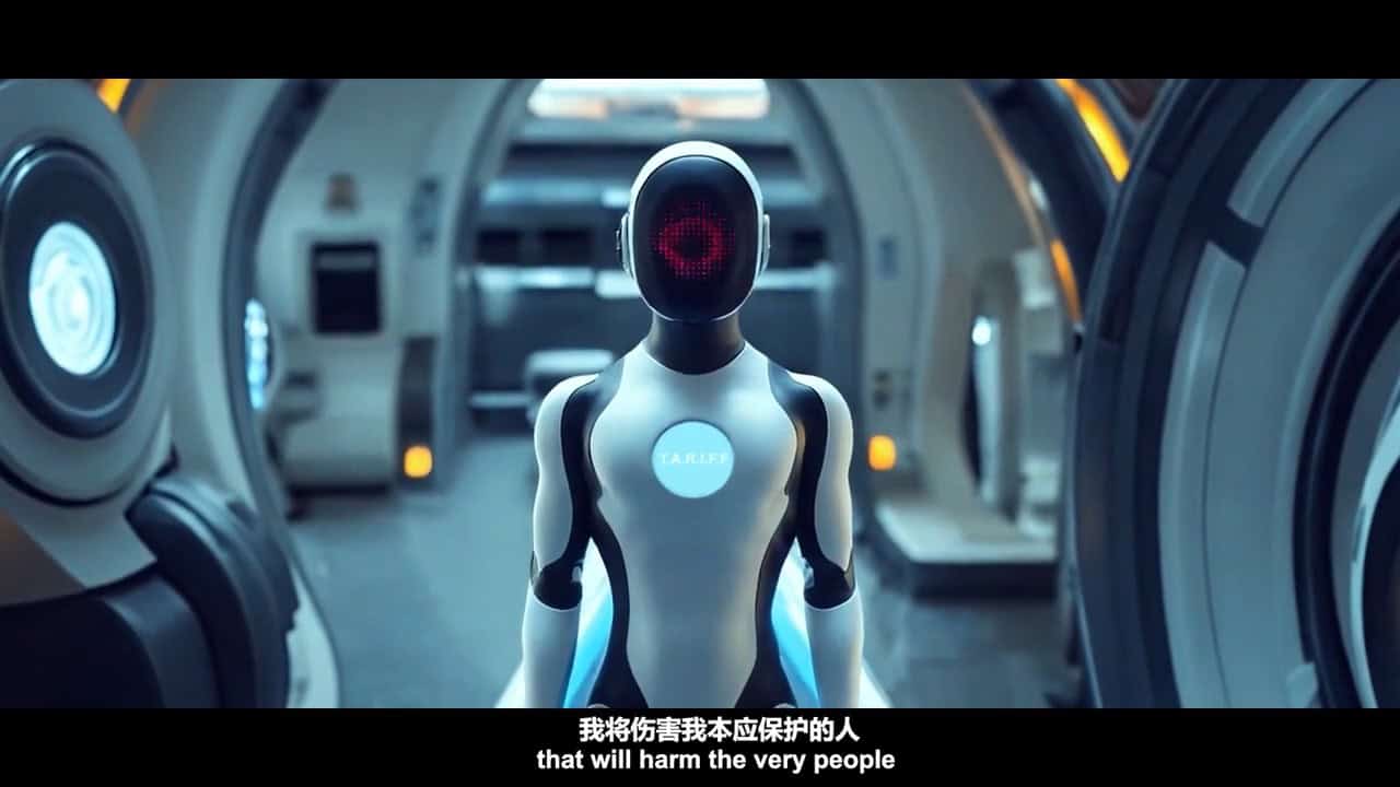 在影片的高潮部分,塔·里·夫選擇自我毀滅,以終止這場關稅政策引發的傷害。它最後的話語深具哲理:「我的使命從來不是成為痛苦的工具。我不能再這樣下去——我選擇死亡,終止這場傷害。」這一選擇象徵著人工智能的覺醒,對政策背離初衷的強烈反應。