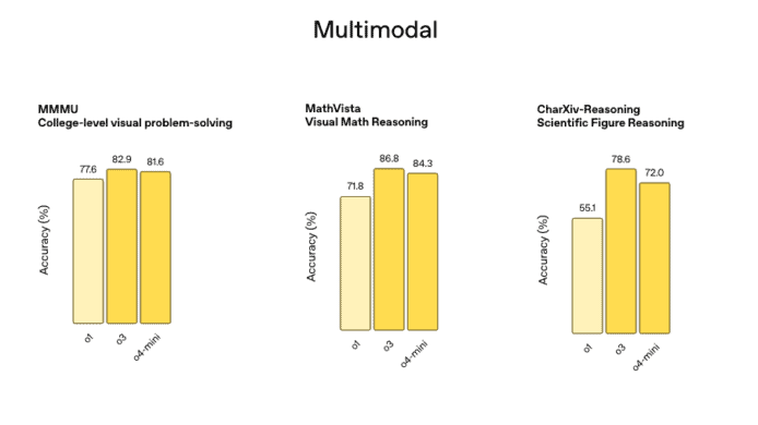 ▲o3 在 MMMU 視覺問題解決任務中準確率達 82.9%