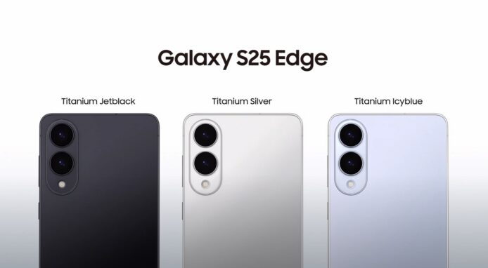 ▲Galaxy S25 Edge 設有三隻顏色,分別為鈦金屬灰黑、鈦金屬銀及鈦金屬冰藍。