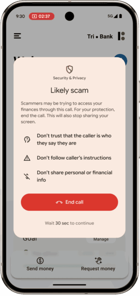 除了設計及功能上,今次 Google 在 Android 16 上亦特別強化系統在安全及私隱方面的表現,首先加入了 In-call Protection 功能,令用家通話時避免執行安全風險較高的操作,例如:不能停用 Google Play Protect、不允許首次從未經 Google 安全與私隱審核的來源側載應用程式、以及不能授予無障礙功能權限等,為用家提供額外保障。另外,它亦在 Google 的自家「電話」程式中加入以 AI 驅動進行詐騙偵測功能,當系統發現可疑的對話模式時,就會即時向用戶發出警告,以免用家誤墮對話式詐騙陷阱。而此功能亦可應用於 Google 自家的「訊息」程式中,而在訊息 APP 中,更將詐騙訊息範圍加大至以下項目:包裹運送、求職相關、隧道費及其他帳單費用、加密貨幣、偽冒金融機構、禮品卡及中獎、以及技術支援等。另外,Android 16 亦加入了 Key Verifier 功能,它讓用戶及傳送訊息對像透過公開加密金鑰作身分驗證,進一步確保對方身分的真實性,從而保護用家在 Google 訊息 APP 中進行的端對端加密訊息,以打擊詐騙欺詐及身分冒充等情況。