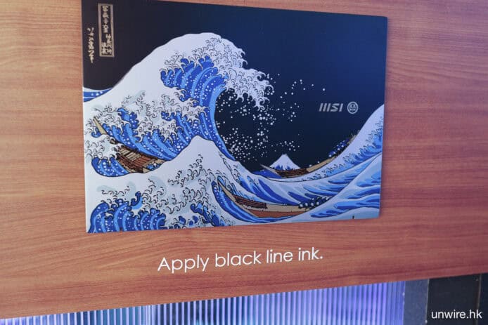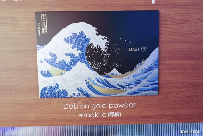 Prestige 13 AI+ 浮世繪特仕版為 MSI 與擁有 400 多年歷史日本知名漆器品牌 OKADAYA 攜手製作的「匠心工藝系列」。筆電融合山中漆器傳統工藝與最尖端 AI 技術,以葛飾北齋舉世聞名浮世繪木刻版畫《神奈川沖浪裏》為設計元素,透過簡約有力色彩和鮮明輪廓特色,體現浮世繪精神與美學意涵。