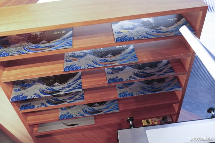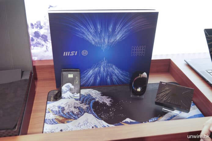 ▲ 搭配的產品包裝盒和配件也經過精心設計,包括《神奈川沖浪裏》浮世繪的中型滑鼠墊、證件套,仿造山中漆器的鏡面無線滑鼠,與一個黑色絨布材質的筆電收納包,整個系列毫不馬虎