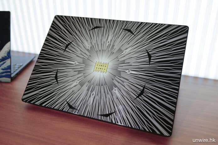 除了浮世繪《神奈川沖浪裏》版本之外,現場還展出同樣與 OKADAYA 聯手製作的另一設計,採用日本漆器常見的放射狀紋路為意念的設計,同樣相當有霸氣。