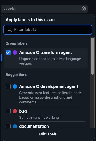 用家也可以使用 Q Developer 將舊版的 Java 8 或 11 更新到 Java 17,未來會提供更多選項。首先,用家需要在包含 Java 8 或 11 應用程式的 GitHub 儲存庫中建立問題。用家可以寫一個簡短的標題,例如“遷移”,並留空描述。然後將 Amazon Q 轉換代理標籤指派給該問題。