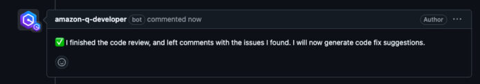 在剛剛的拉取請求, Amazon Q Developer 對生成的程式碼已執行了一些自動檢查。