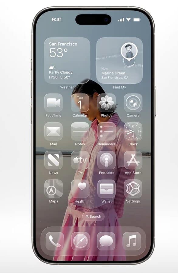 新設計靈感來自 visionOS 的深度與立體感,善用 Apple 在硬件、晶片及圖像技術方面的強大進步。Liquid Glass 材質表現如同現實世界中的玻璃,顏色會根據周圍內容調整,並智能地在明亮與黑暗環境間適應。設計與工程團隊緊密合作,Liquid Glass 採用即時渲染技術,動態回應移動並產生鏡面高光效果。Apple 指,這種美觀新材質從用戶每日互動的最小元素開始應用,包括按鈕、開關、滑塊、文字及媒體控制項,延伸至較大元素如標籤欄及側邊欄。系統體驗如鎖定畫面、主畫面、通知、控制中心等也採用此設計。
