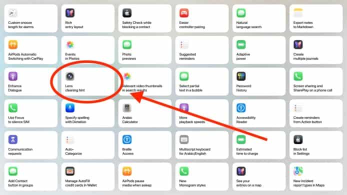 這項功能在 WWDC 2025 上並未有詳細說明,其運作原理也未完全公開,但合理推測系統會在拍照前自動偵測鏡頭上的污漬或手印,並發出通知提醒用戶清潔相機鏡頭。雖然看似微不足道,但對於曾因油膩指紋或口袋絨毛導致照片品質受損的用戶而言,就相當有用。
