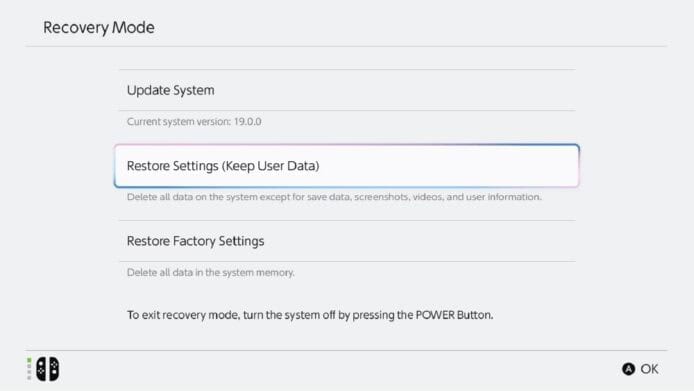 任天堂提供的第一種解決方案相對簡單,透過進入復原模式重置電池電量計: