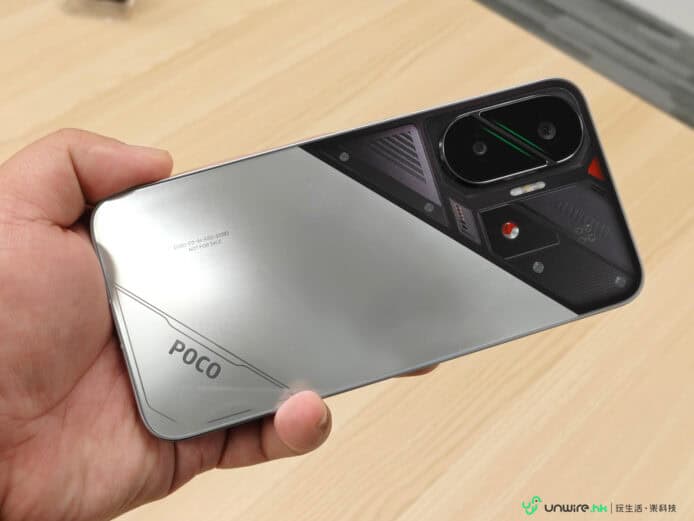 ▲機身設計方面,POCO F7 除了設有經典的黑、白兩色外,亦設有獨特,以銀、黑色為主的機甲風設計機身,官方稱為「Cyber Silver」版本,十分有型亦充滿電競感。