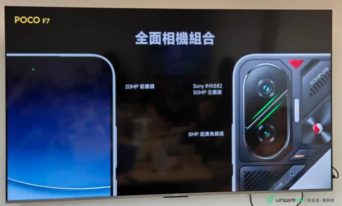 ▲鏡頭方面,POCO F7 內建了 5,000 萬像素 f/1.5 主攝鏡、800 萬像素超廣角鏡及 2,000 萬像素自拍鏡,配置算是中規中矩。