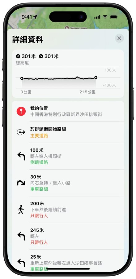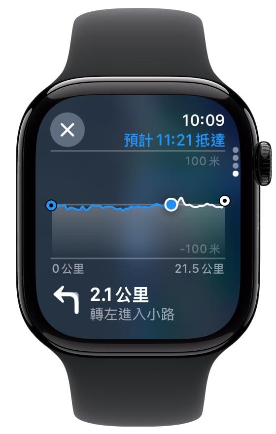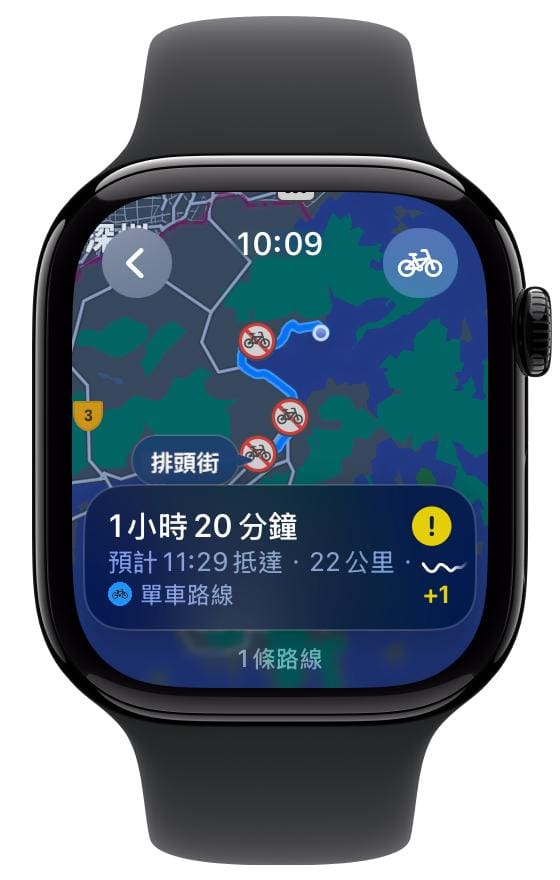 在 Apple Watch 上提供觸感反饋的「逐步導航」、路線高度概覽及語音播報距離與速度資訊,無需頻繁查看手機。