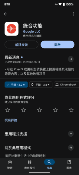 如你在手機找不到「Google 錄音功能」,可經由 Google Play 商店下載,網址: