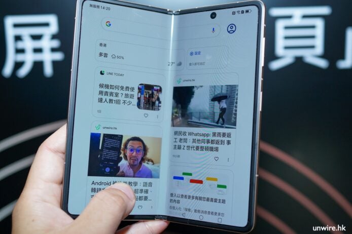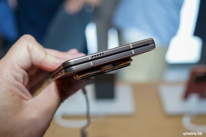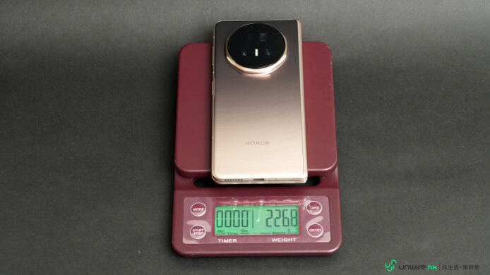 筆者現場體驗過,機身確實十分輕薄,即使長時間握在手上使用也不覺累,而且摺疊時闊度及厚度與一般直板手機差不多,使用手感十分不錯。另外暖白色更採用了全新的金絲軟甲物料製造,它採用了與太空人太空服牽引繩相同物料的航天特種纖維,這種纖維直徑只有 0.014mm,不但十分幼而且韌度十分高,加上 Honor 採用了全新的專屬生產線、以 5 倍加工提升精度及為生產員工提供超過 100 小時的特別培訓,在機背採用了 4,500 支這種航天特種纖維,這種編織手法製作出來的機背蓋,或者說官方號稱的「金絲軟甲」,比紙輕了 61%,同時亦令機背蓋更薄身,同時它的強度比鋼更強了 2.5 倍。