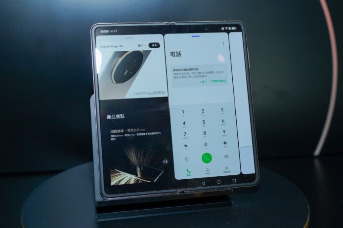 至於規格方面,Magic V5 內建了兩塊熒幕,分別是機面的 6.43 吋 2376 x 1060 解析度 120Hz OLED 熒幕,以及機內的 7.95 吋 2352 x 2172 解析度 120Hz 更新率可摺疊柔性 OLED 熒幕。