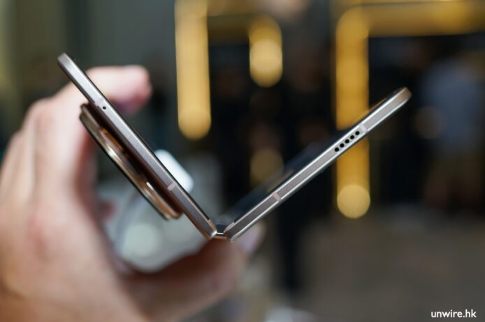 今次發佈的 Honor Magic V5 國際版 / 港行版,與國行版一樣設有曙光金色、暖白色、絲路敦煌色及絨黑色 4 隻機款,主打的依然是輕薄設計,當中最輕薄的暖白色版本,摺疊情況下厚度只有 8.8mm,展開機身後更薄至只有 4.1mm 厚,而重量方面亦輕至只有 217g,是現時市場上最輕薄的大摺之一。