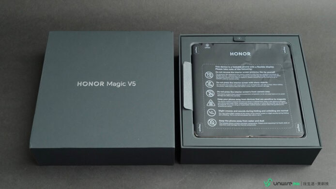 ▲最後只要撕走 Magic V5 的包裝紙,再長按開關鍵,就可以啟動 Magic V5 電源並進行初始設定,至此 Honor Magic V5 開箱部分結束。
